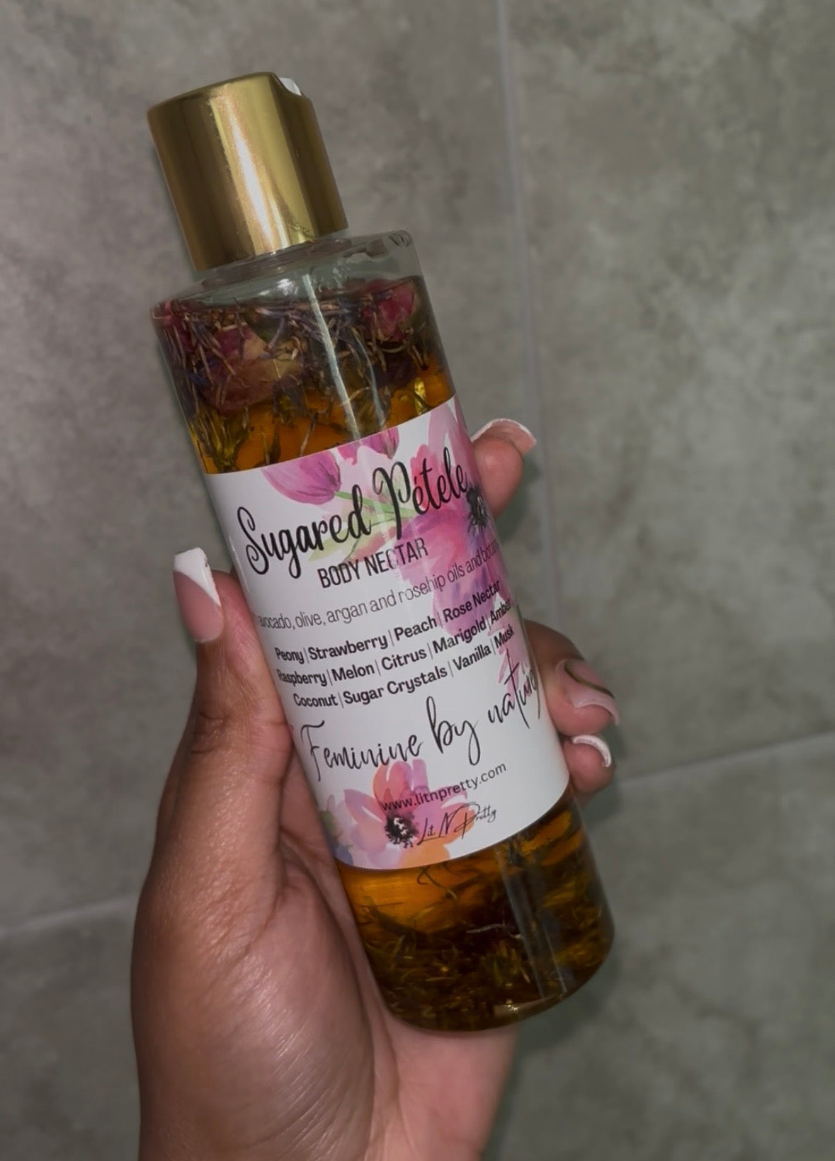 Our Sugared Pétele Body Nectar melts into your skin with soft florals, bright fruitiness and warm sweetness, leaving your body silky, glowing and beautifully feminine💕✨ Includes notes of peony, rose nectar, marigold, peach, raspberry, strawberry, melon, amber, coconut, vanilla and sugar crystals. Sugared Pétele is your feminine signature🌷🌺🌸✨